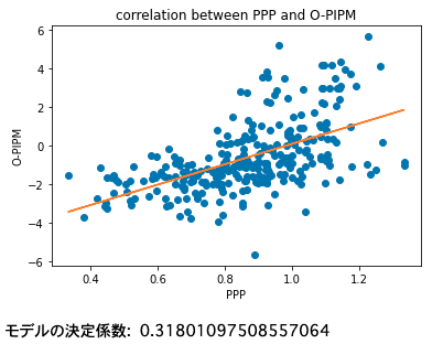 print("PPPとO-PIPMの相関係数: ",data["PPP"].corr(data["O-PIPM"]))