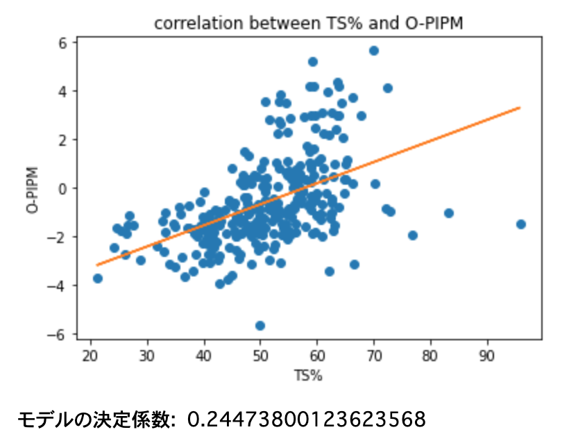 #回帰直線入のTS%とO-PIPMの散布図を書く