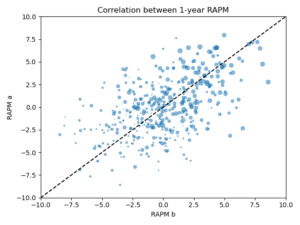 チームごとの特徴を統制変数として測定することは、極めて難しいです。そもそも測定するには「この要素は得点や失点に影響するだろう」という仮説が必要です。これは、分析者のバスケへの理解(ドメイン知識)に起因する限界です。次に、影響する要素の定量化が難しいことがあります。これは、測定技術に起因する限界です。これら2つの限界から、統制変数を重回帰分析に組み込むのは非常に難しいです。モデルに組み込む統制変数に抜け漏れがあると、オフェンスリバウンドの価値の推定値が歪みます(欠落変数バイアス)。